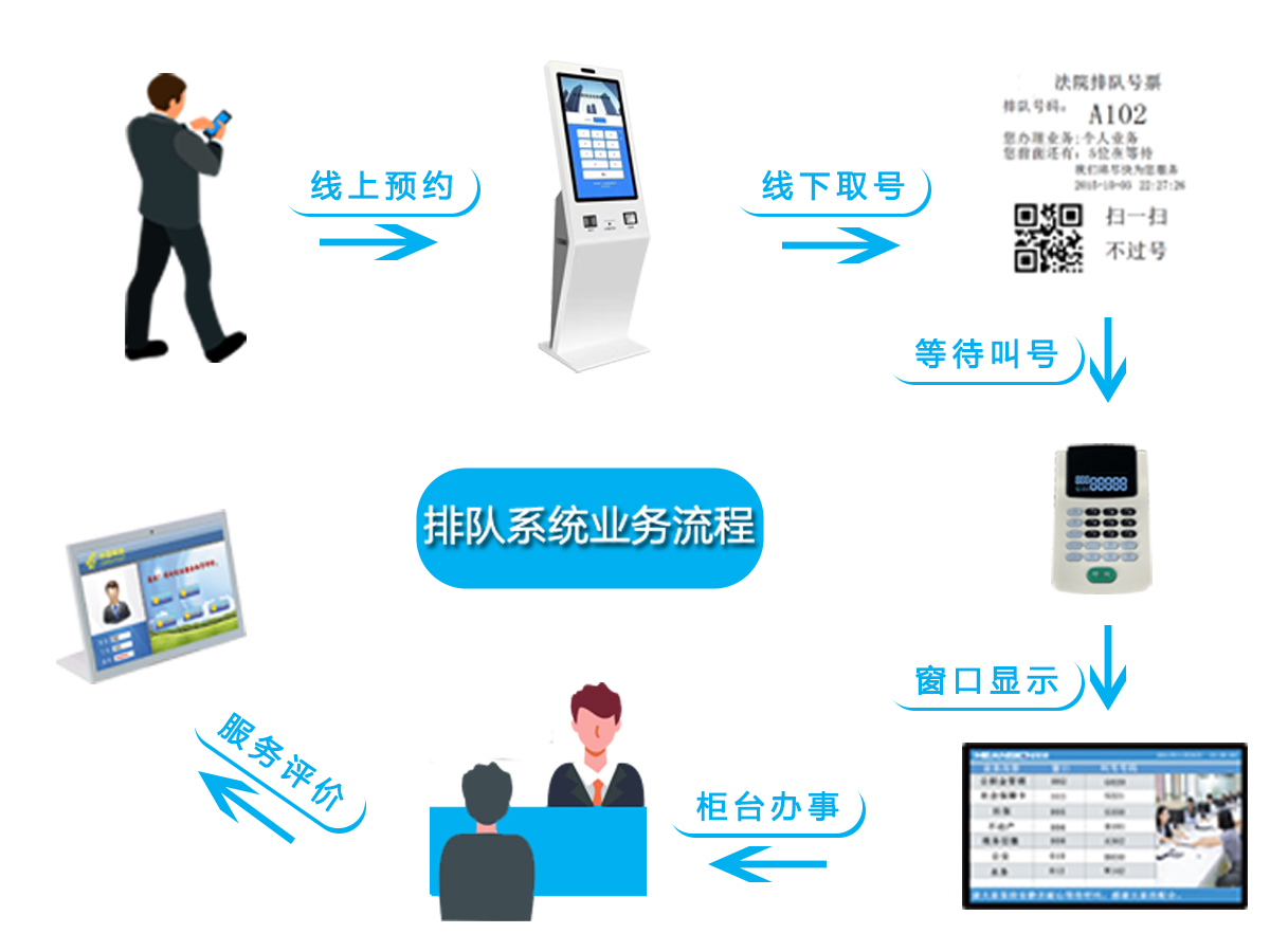 排隊叫號系統(tǒng)顯示設備可以是單雙色LED屏,也可以是液晶顯示屏,用于展示排隊數(shù)據(jù),也可以從液晶顯示屏出發(fā)聲,